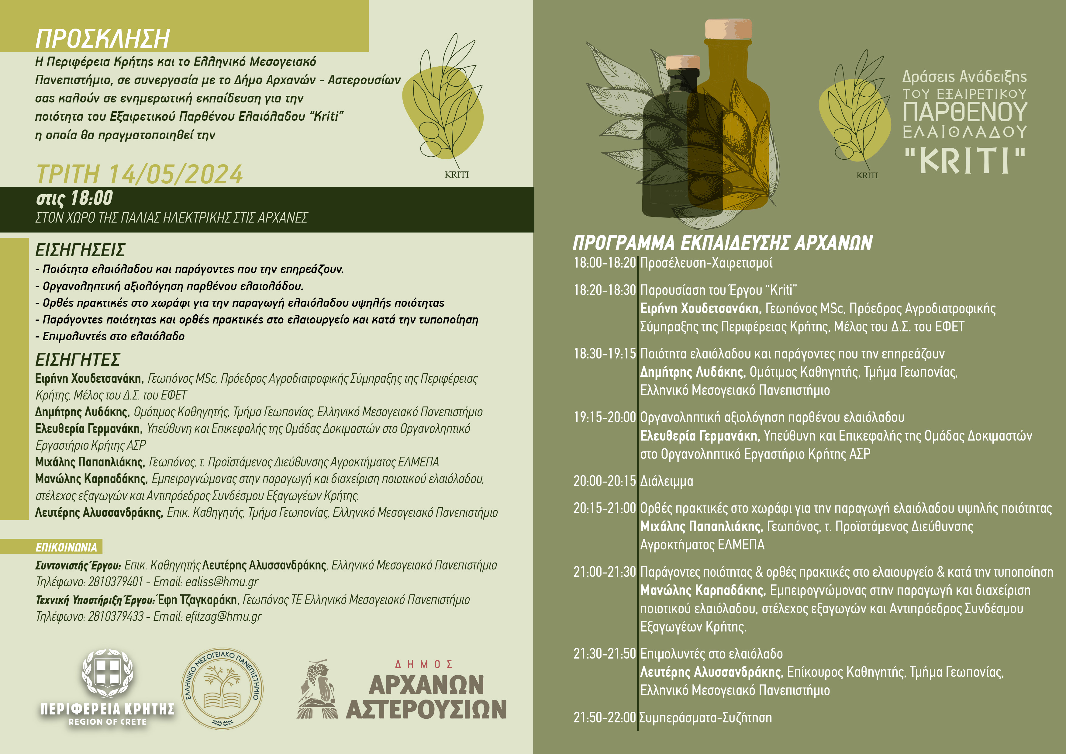 Δράσεις Αναδείξεις του Εξαιρετικού Παρθένου Ελαιόλαδου KRITI