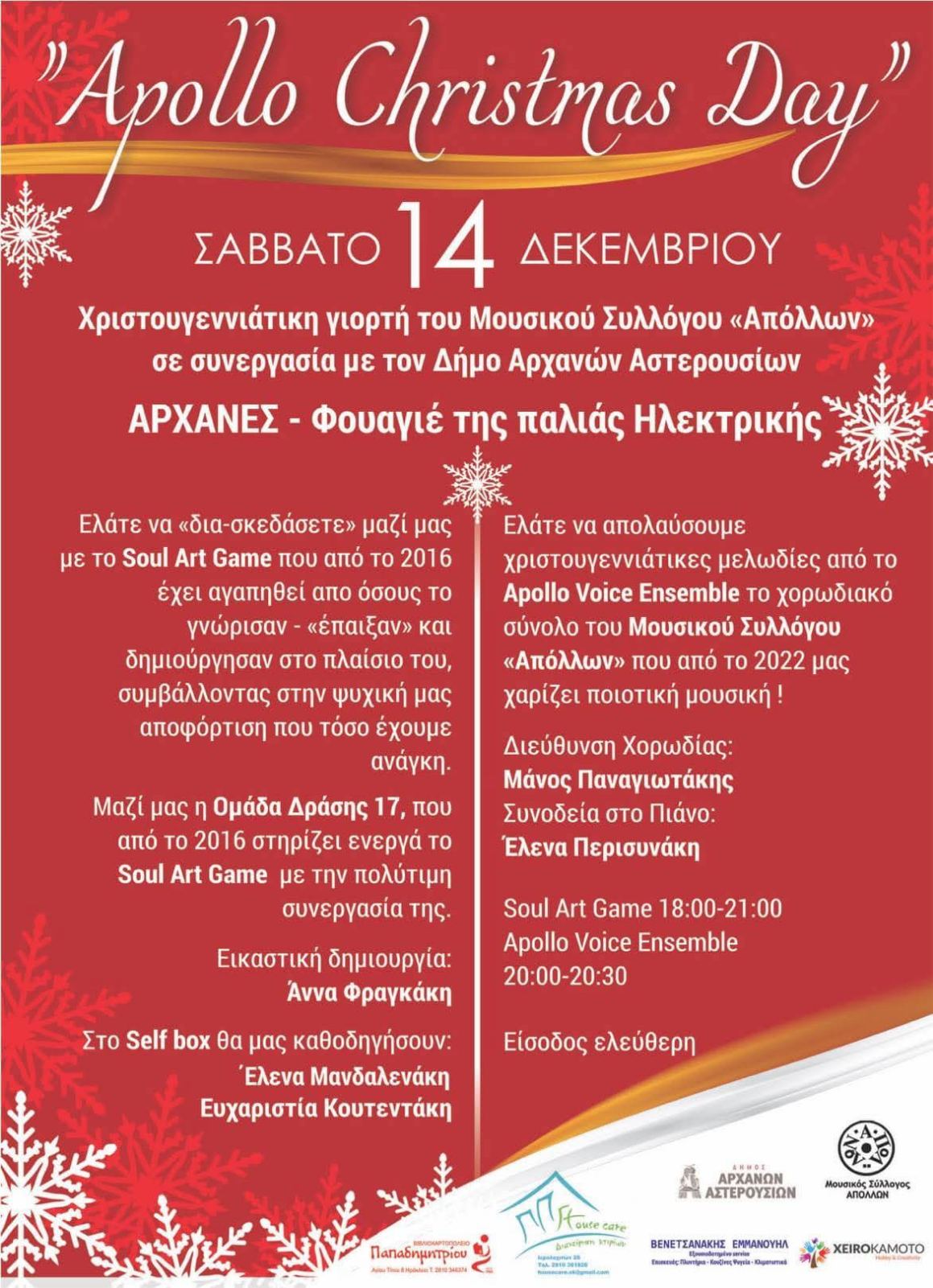 Πρόσκληση για Χριστουγεννιάτικη Γιορτή στις Αρχάνες