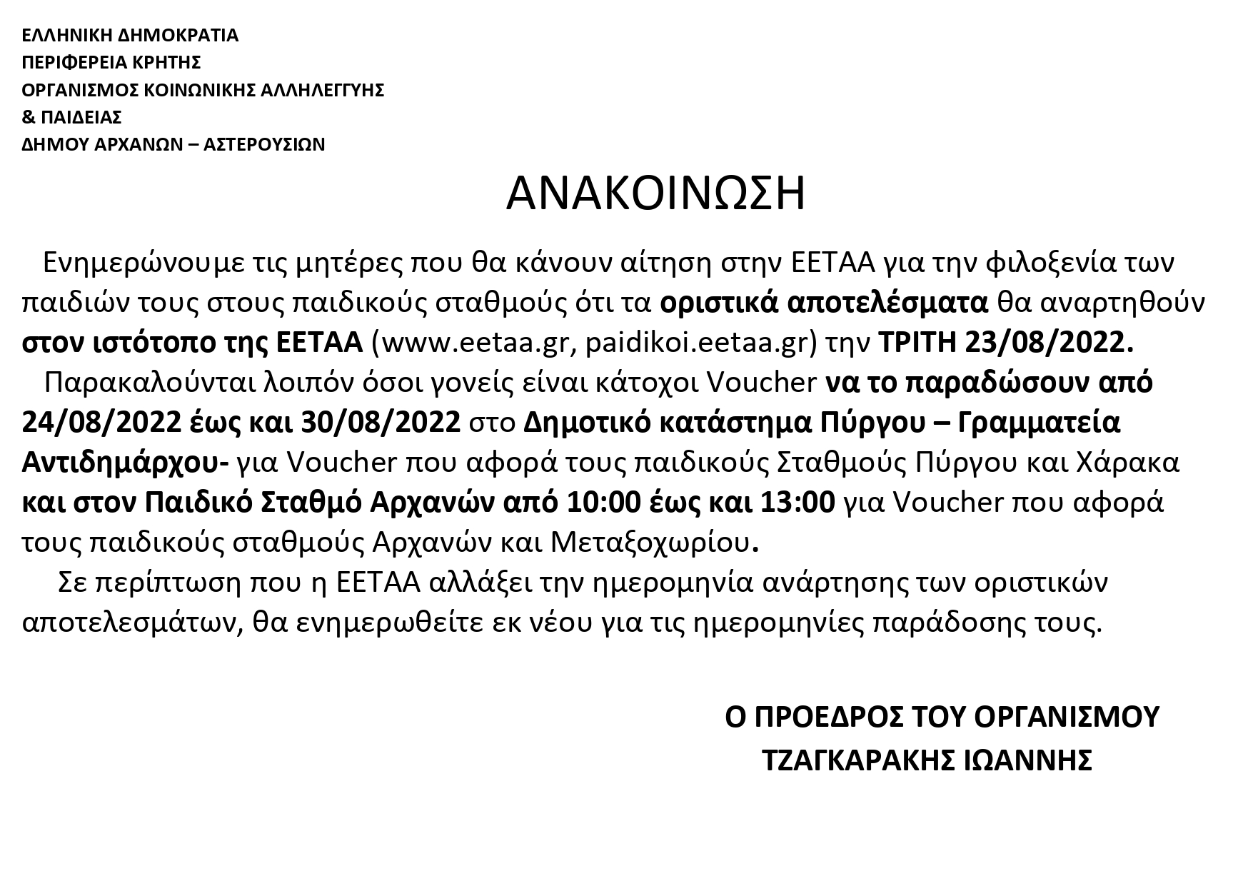 Ανακοίνωση για VOUCHER Σχολ. Έτους 2022-2023